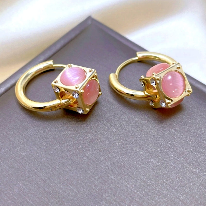 14K Gold-Plated Luxury Pink Lucky Bead Earrings