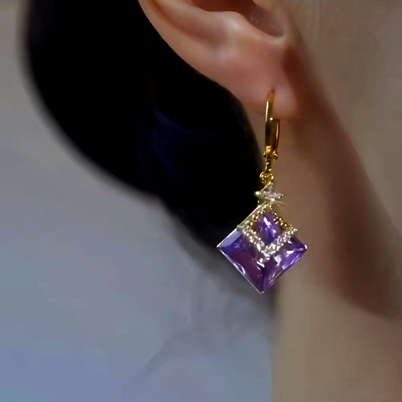 14K Gold-Plated Luxury Purple Geometric Diamond Crystal Earrings