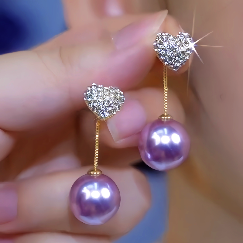 14K Gold-Plated Luxury Purple Pearl Diamond Heart Earrings