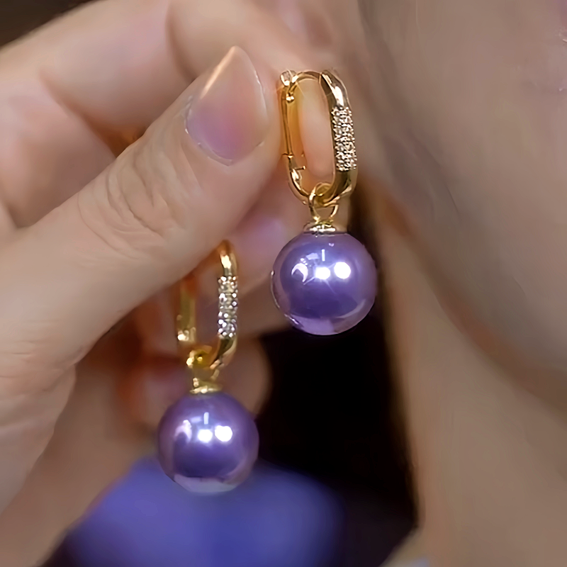 14K Gold-Plated Luxury Purple Pearl Earrings