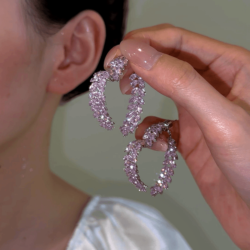 14K Gold-Plated Luxury Purple Zircon Heart-Design Earrings