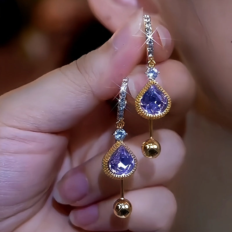 14K Gold-plated Luxury Purple Zircon Lucky Bag Earrings