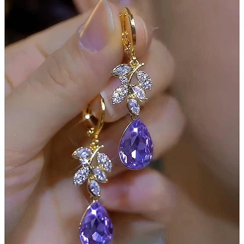 14K Gold-plated Luxury Purple Zircon Water Drop Earrings