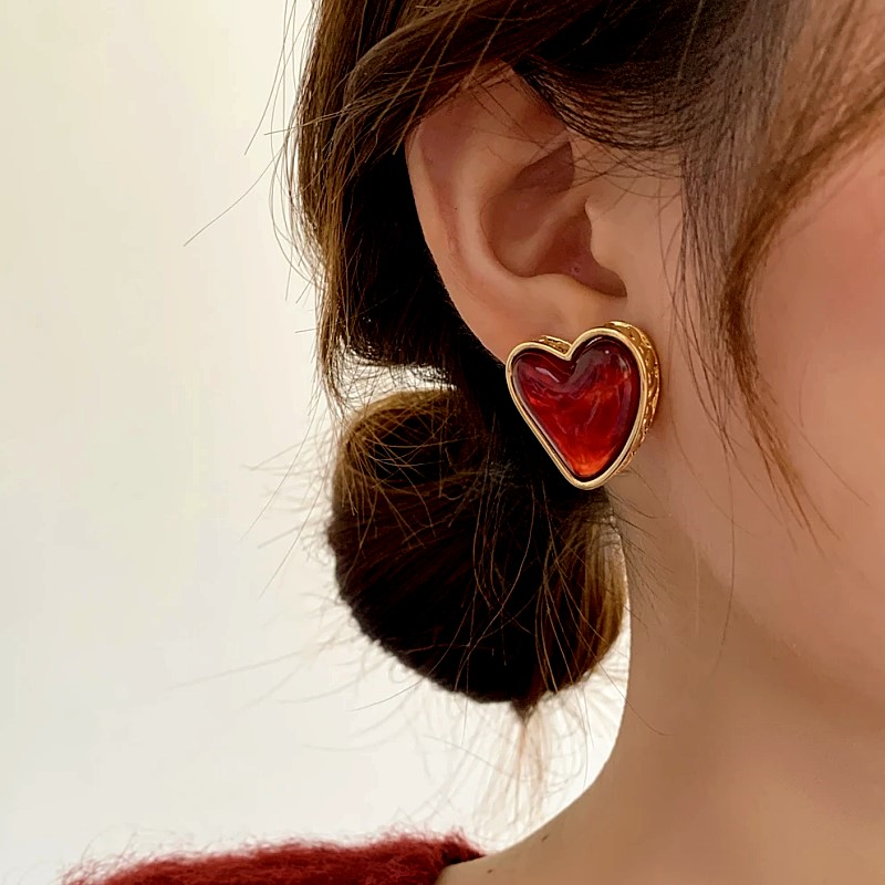 14K Gold-Plated Luxury Red Heart Stud Earrings