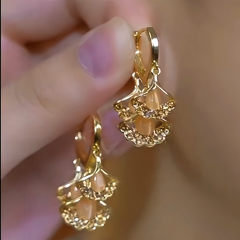 14K Gold-Plated Luxury Three-Piece Ginkgo Leaf Earrings