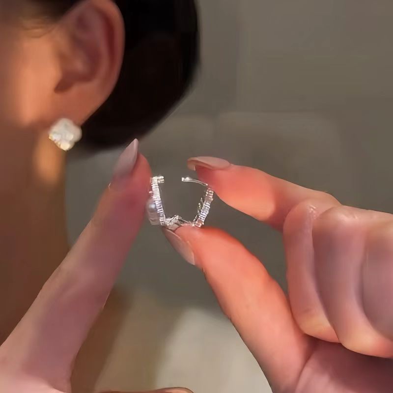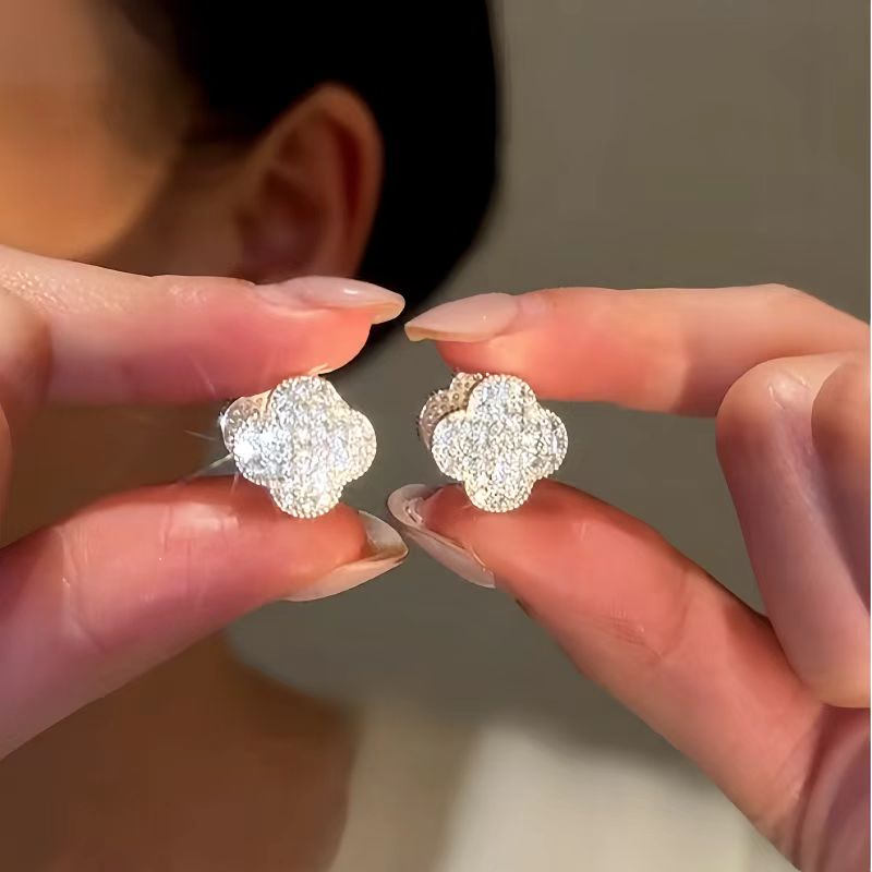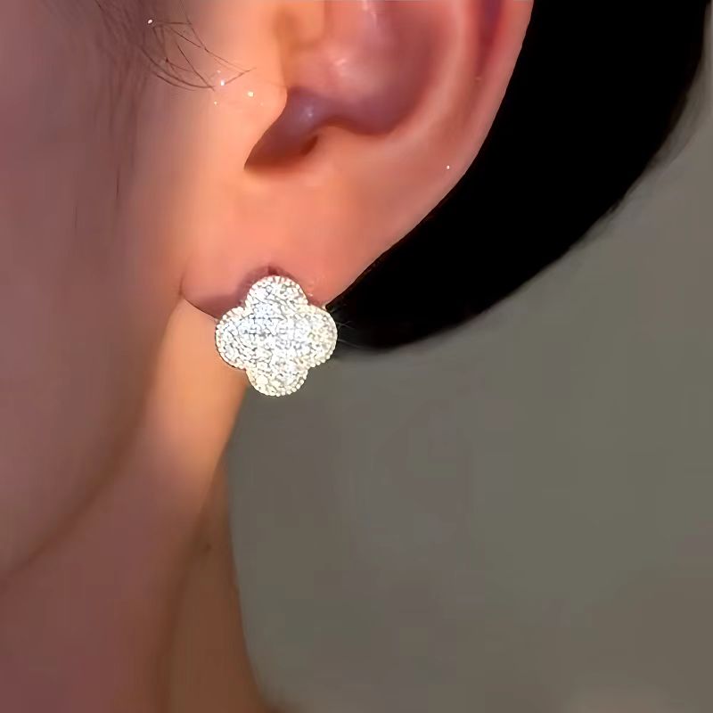 14K Gold-Plated Luxury Zircon Diamond Four-Leaf Flower Earrings