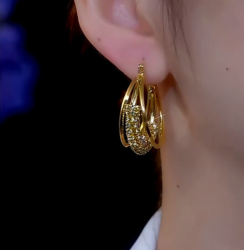 14K Gold-plated Luxury Zircon Hoop Earrings