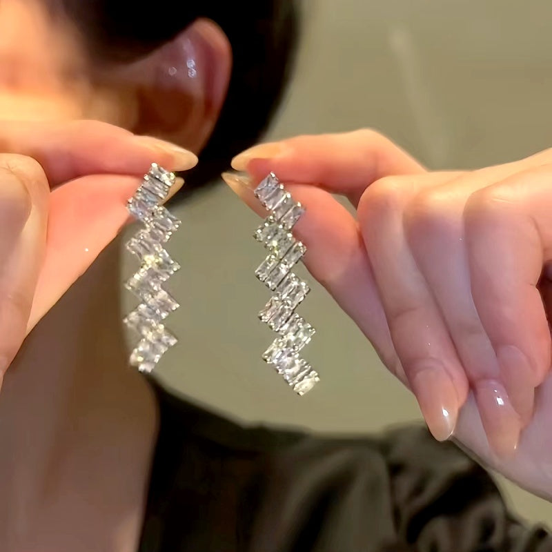 14K Gold-Plated Luxury Zircon Lightning Tassel Earrings