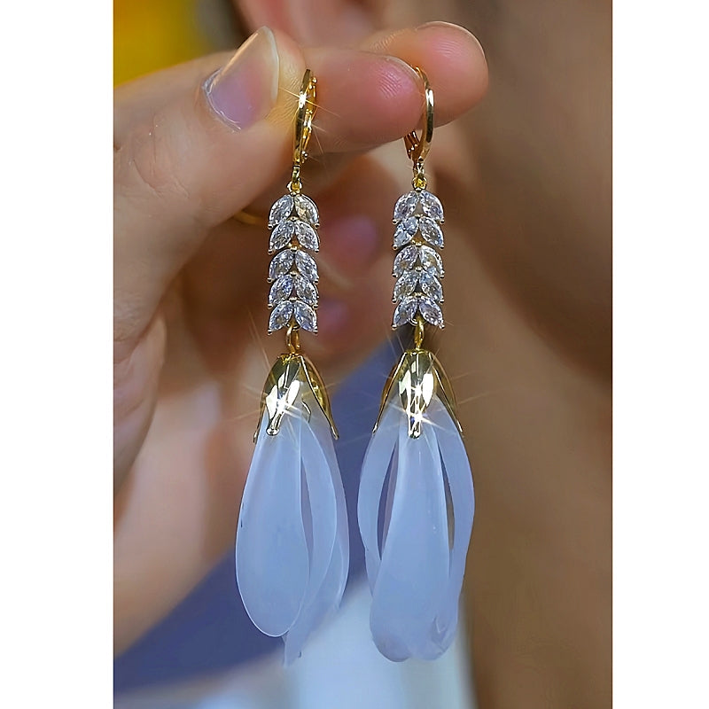 14K Gold-Plated Luxury Zircon Magnolia Earrings