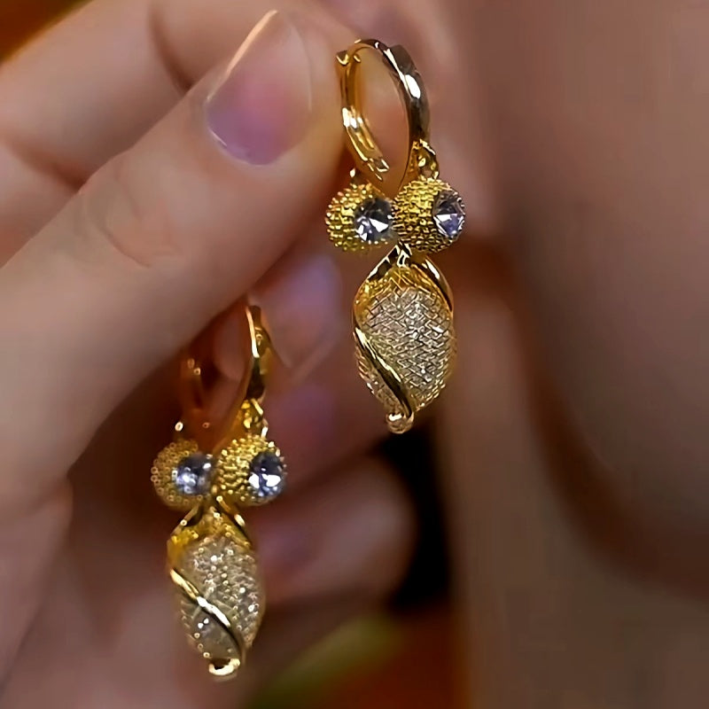 14K Gold-plated Luxury Zircon Mesh Drop Earrings