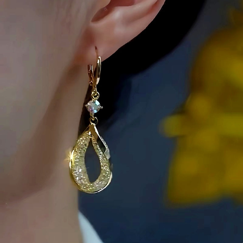 14K Gold-Plated Luxury Zircon Mesh Water Drop Earrings