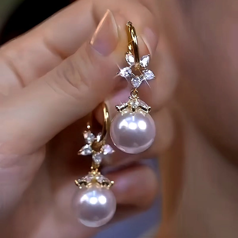 14K Gold-Plated Luxury Zircon Pearl Earrings