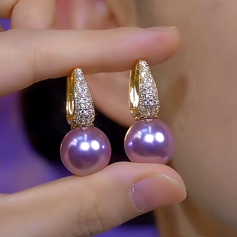 14K Gold-Plated Luxury Zircon Purple Pearl Earrings