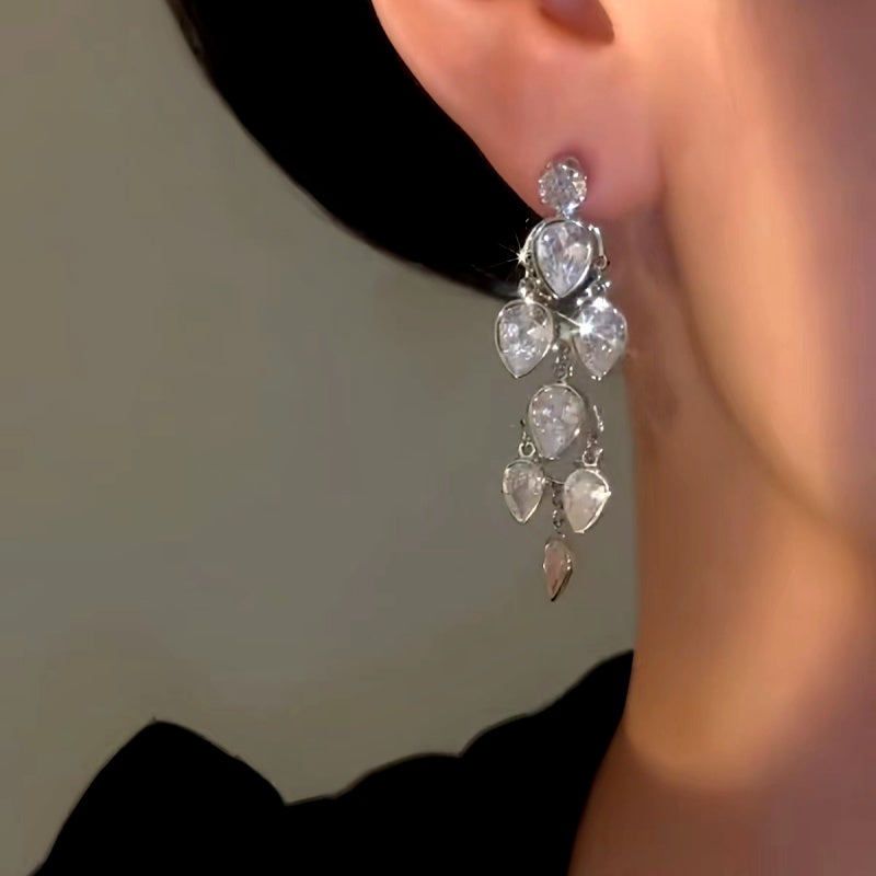 14K Gold-plated Luxury Zircon Tassel Earrings