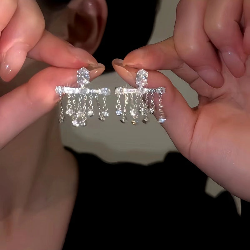 14K Gold-Plated Luxury Zircon Tassel Earrings