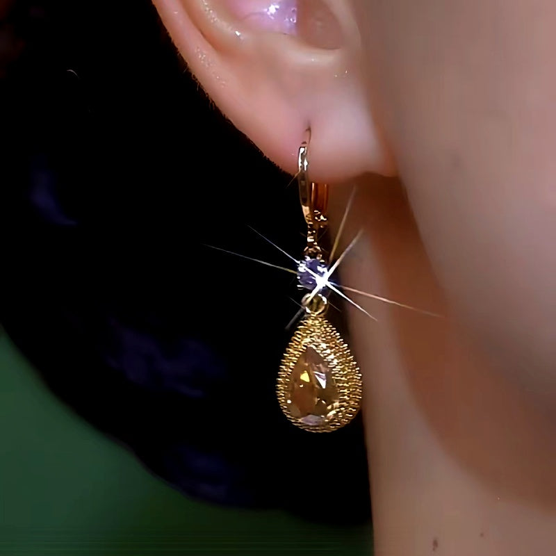 14K Gold-Plated Luxury Zircon Water Drop Durian Earrings