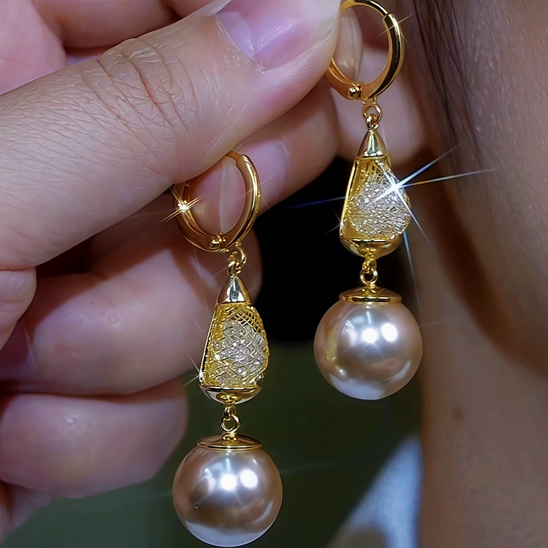 14K Gold-Plated Mesh Pearl Earrings
