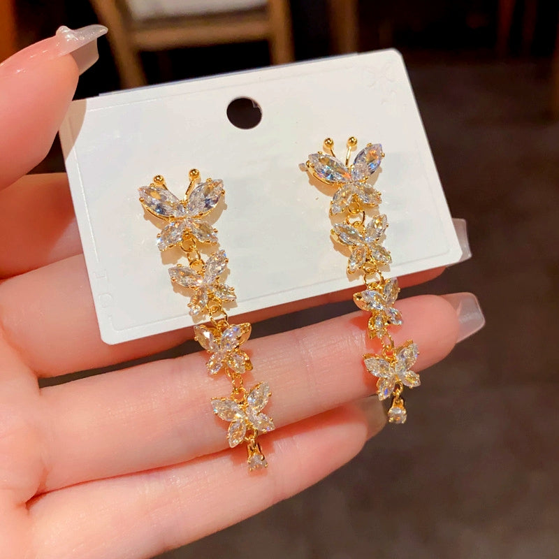 14K Gold-Plated Micro-Diamond Butterfly Tassel Earrings