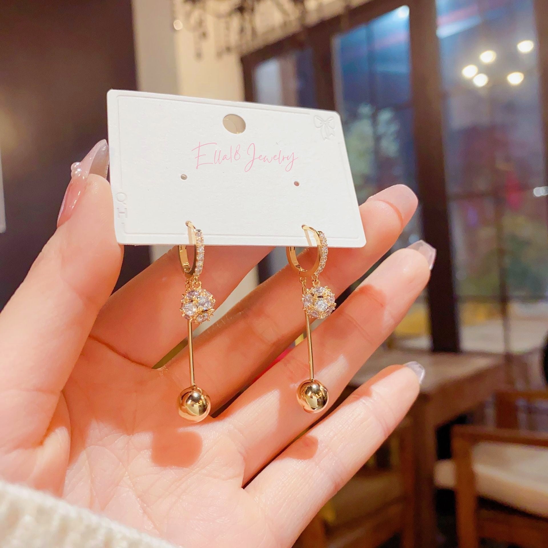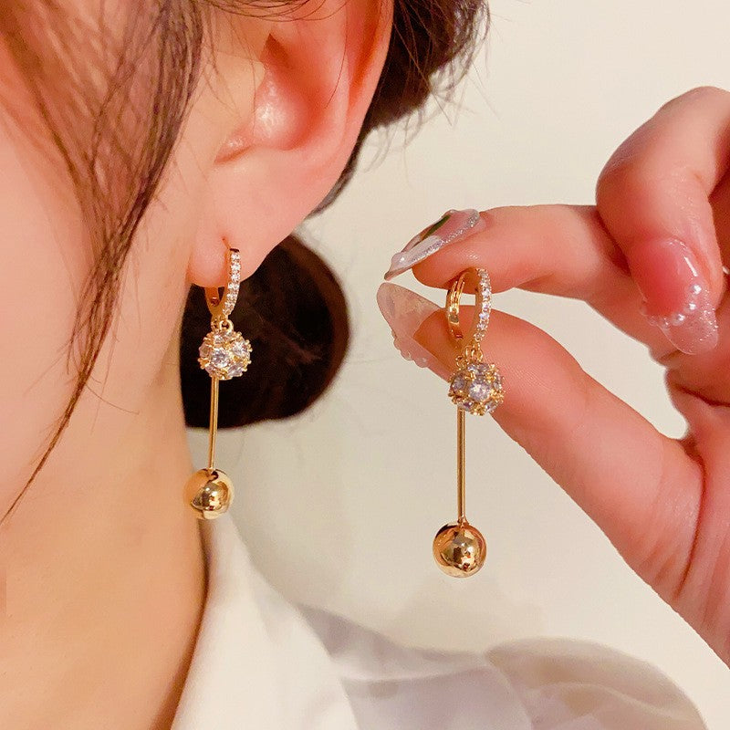 14K Gold-plated Niche Design Zircon Ball Earrings