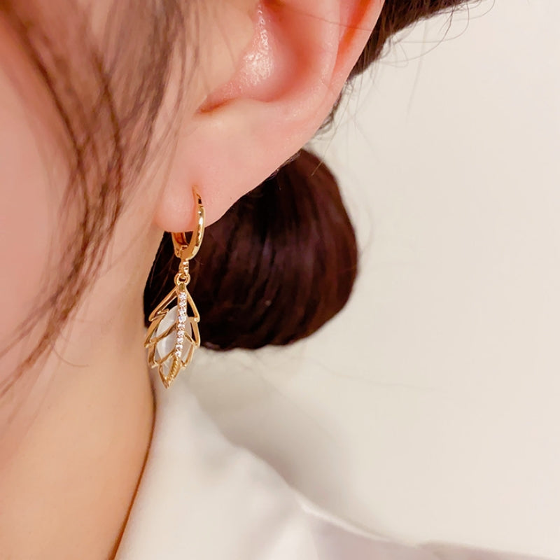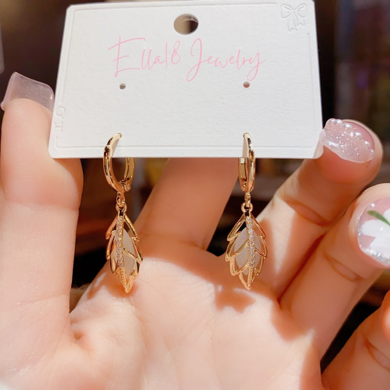 14K Gold-plated Opal Leaf Earrings