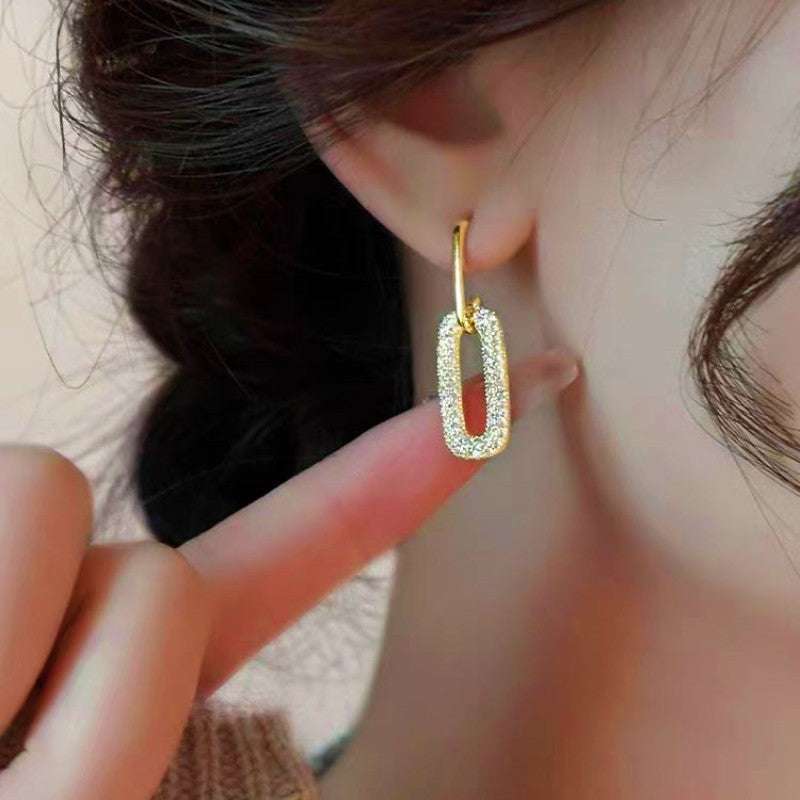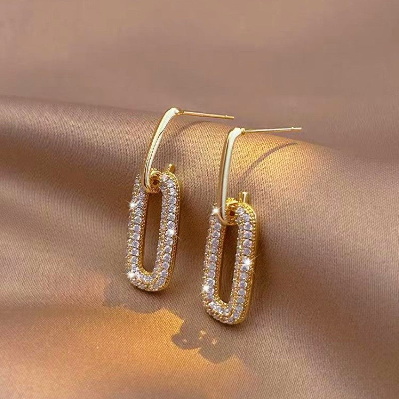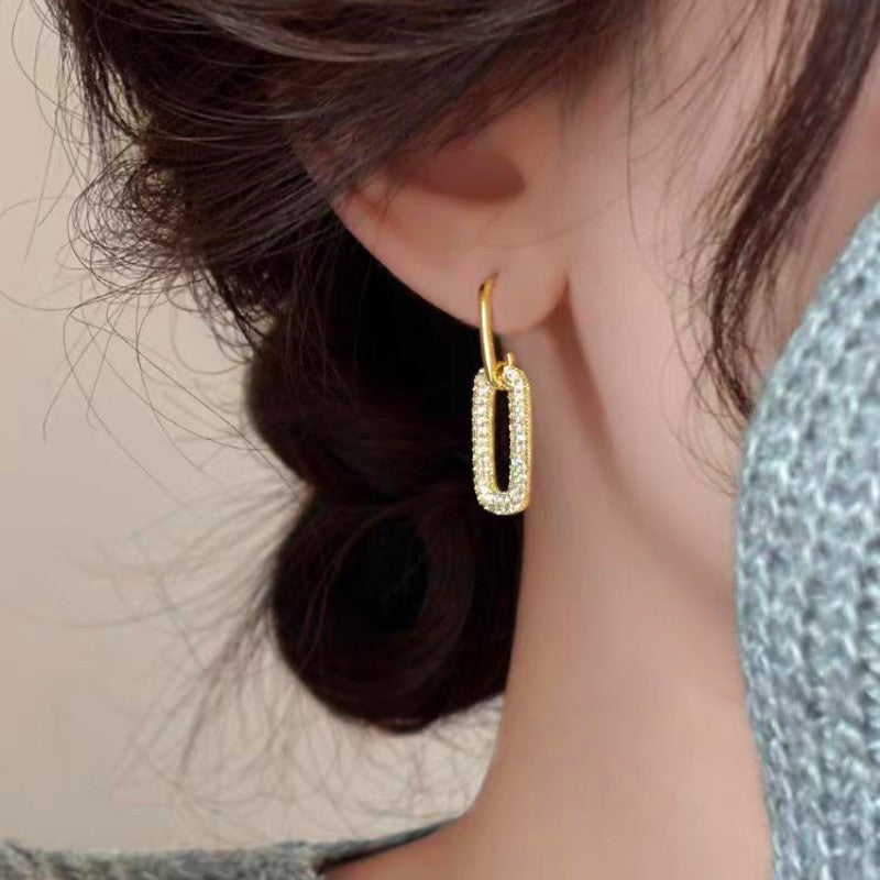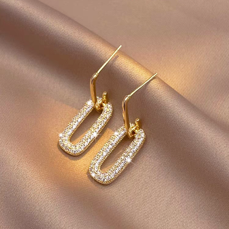 14K Gold-Plated Oval Diamond Earrings