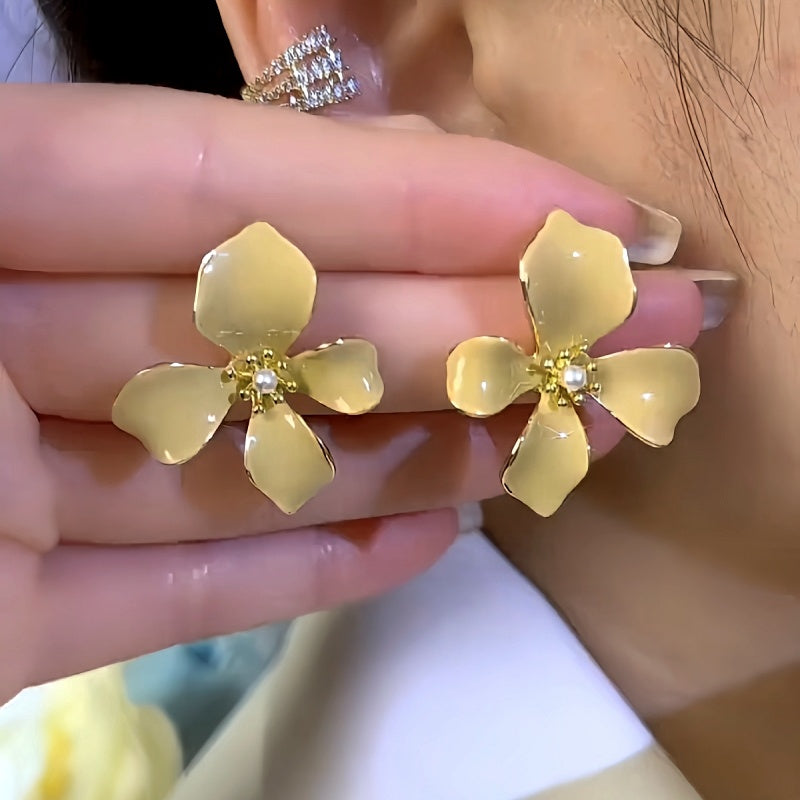 14K Gold-Plated Pearl Brown Flower Stud Earrings
