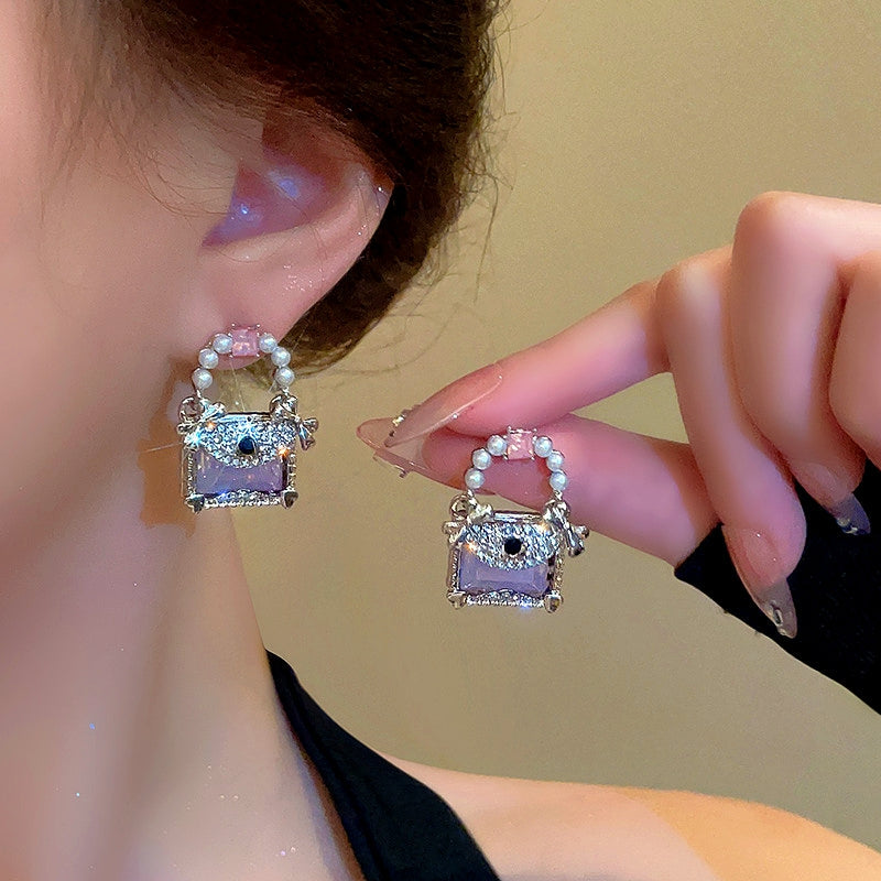 14K Gold-Plated Pearl Crystal Bag Earrings