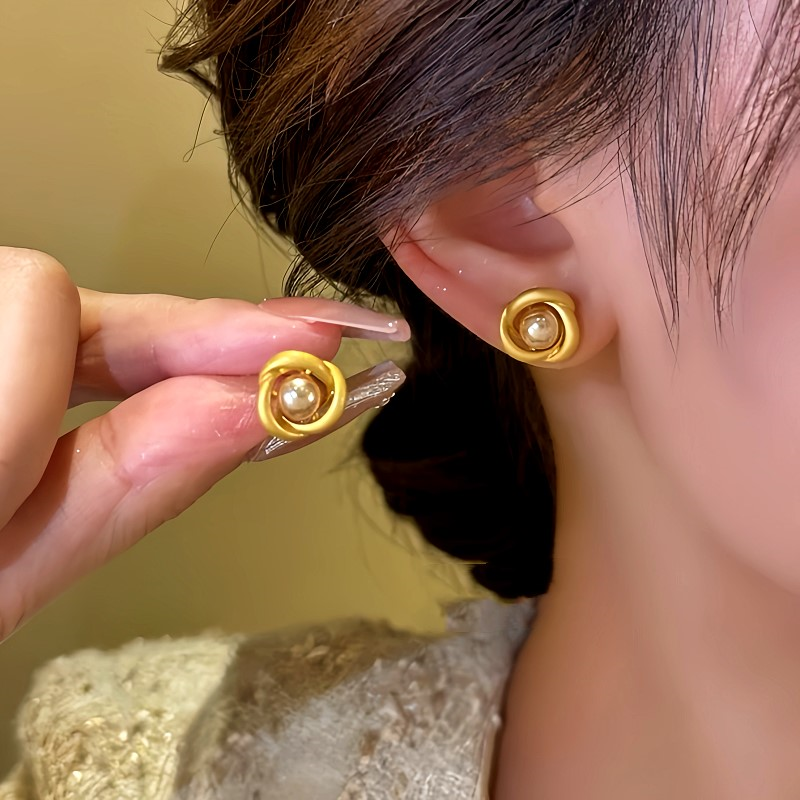 14K Gold-Plated Pearl Frosted Swirl Bead Stud Earrings
