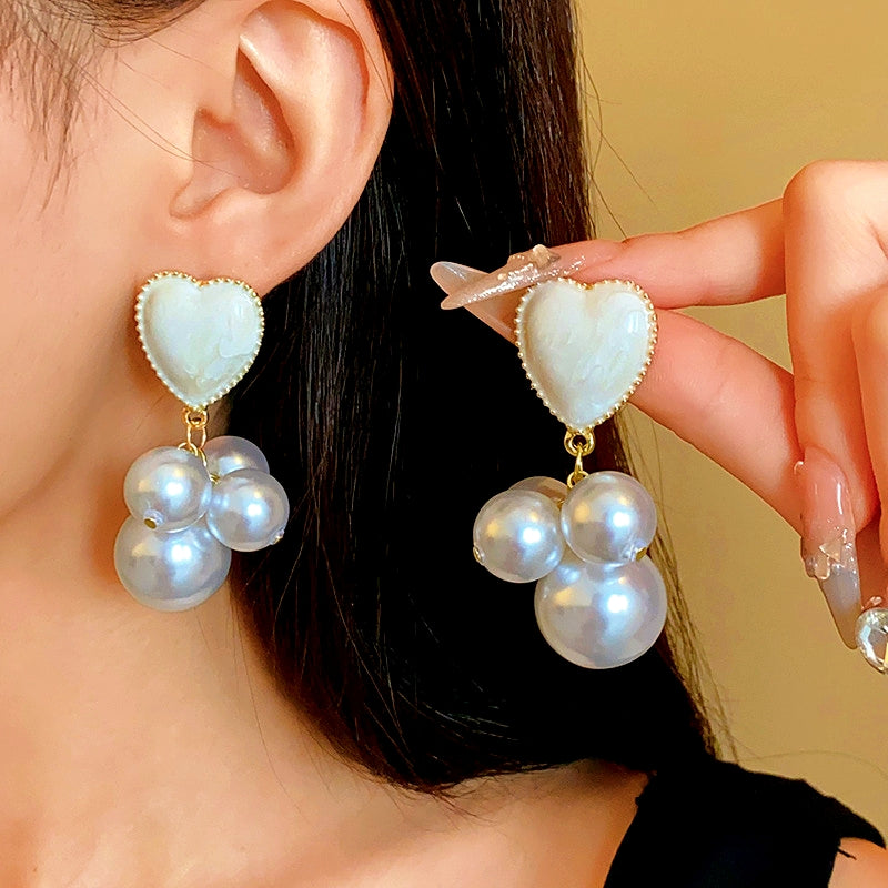 14K Gold-Plated Pearl Heart Earrings
