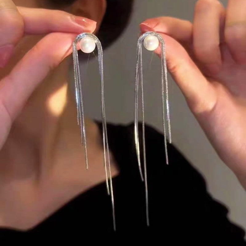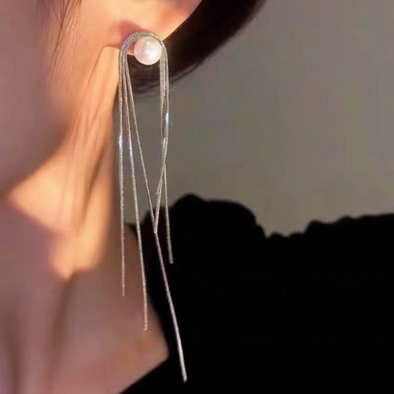 14K Gold-plated Pearl Snake Bone Chain Earrings