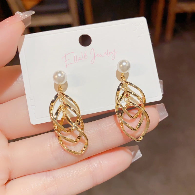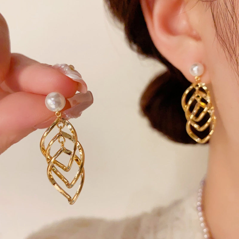 14K Gold-Plated Pearl Twisted Tassel Earrings