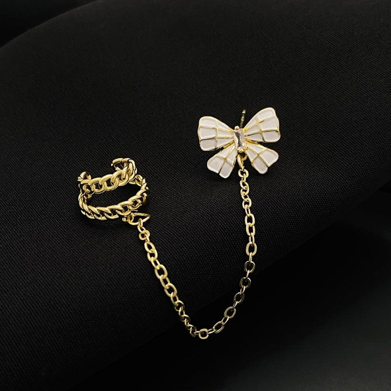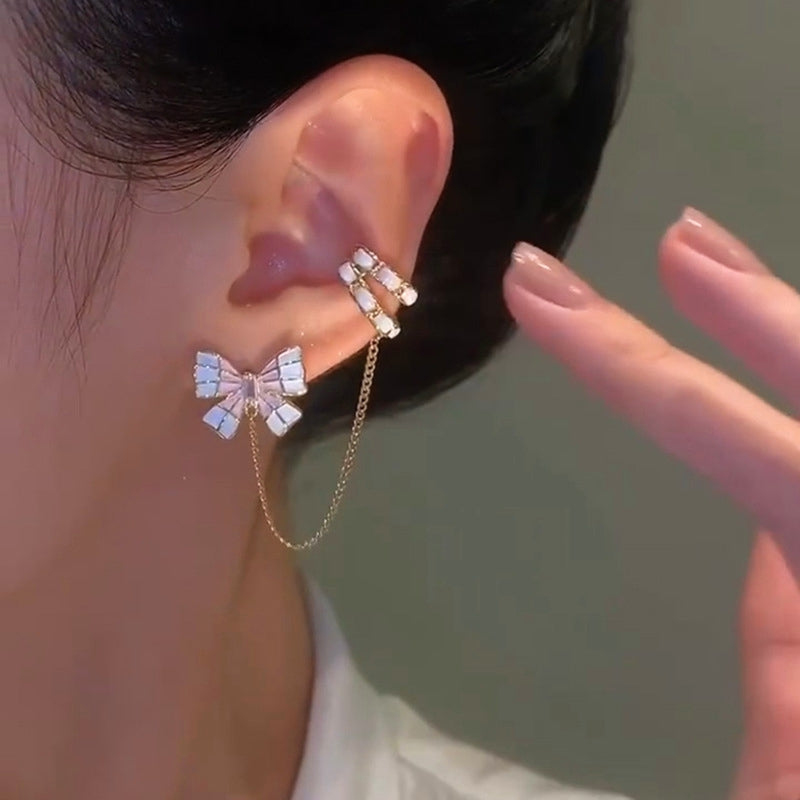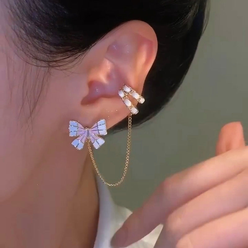14K Gold-plated Pink Bow Ear Cuff ( Left Ear)