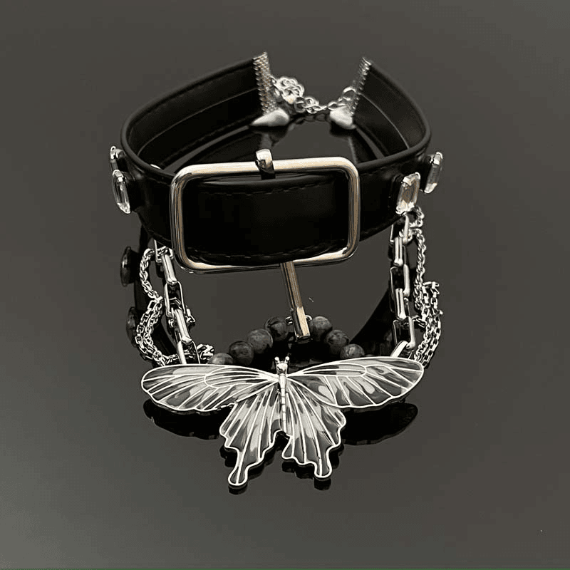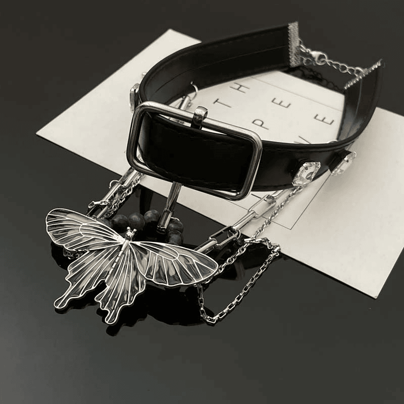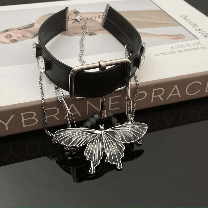 14K Gold Plated Punk Belt Butterfly Tassel Choker