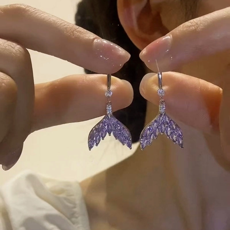 14K Gold-Plated Purple Diamond Fishtail Ear Hook Earrings