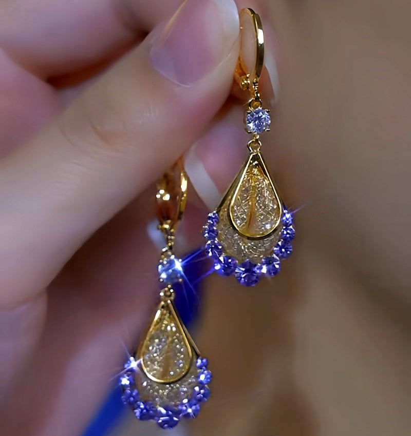 14K Gold-Plated Purple Diamond Mesh Water Drop Earrings