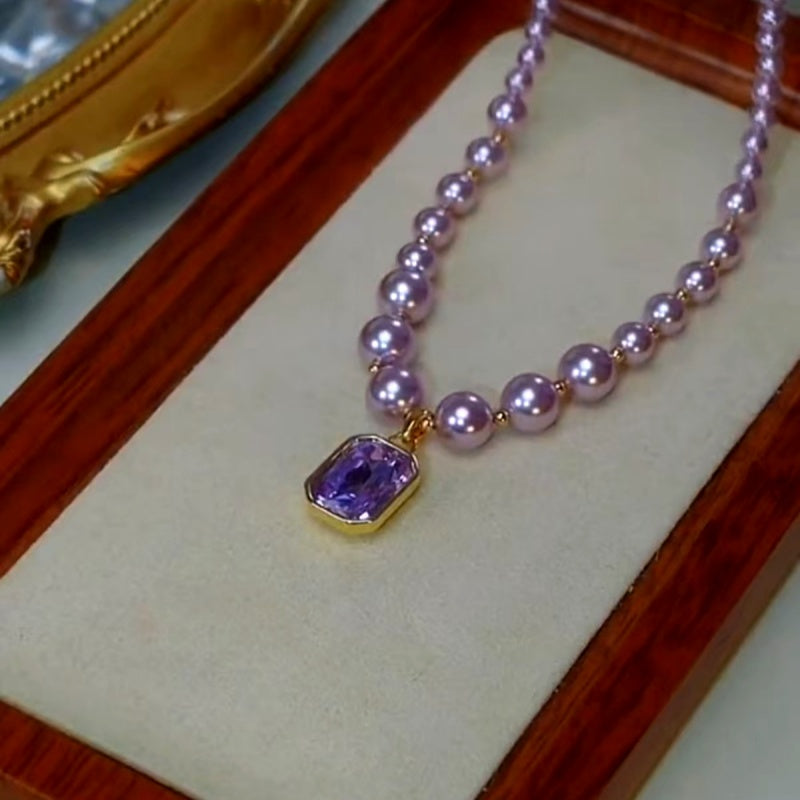 14K Gold-Plated Purple Diamond Pearl Necklace