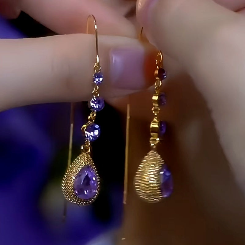 14K Gold-Plated Purple Diamond Threader Tassel Earrings