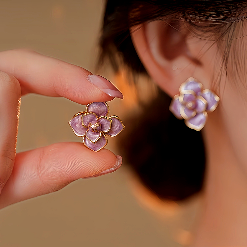 14K Gold-Plated Purple Oil-Drop Flower Stud Earrings
