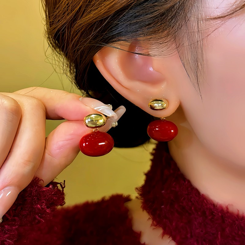 14K Gold-plated Red Enamel Bean Earrings
