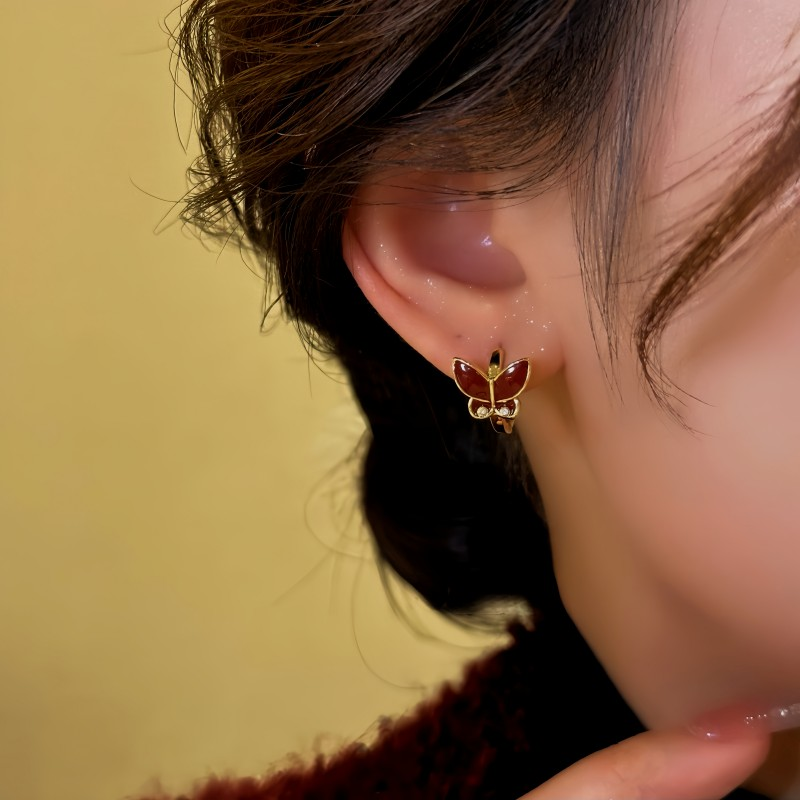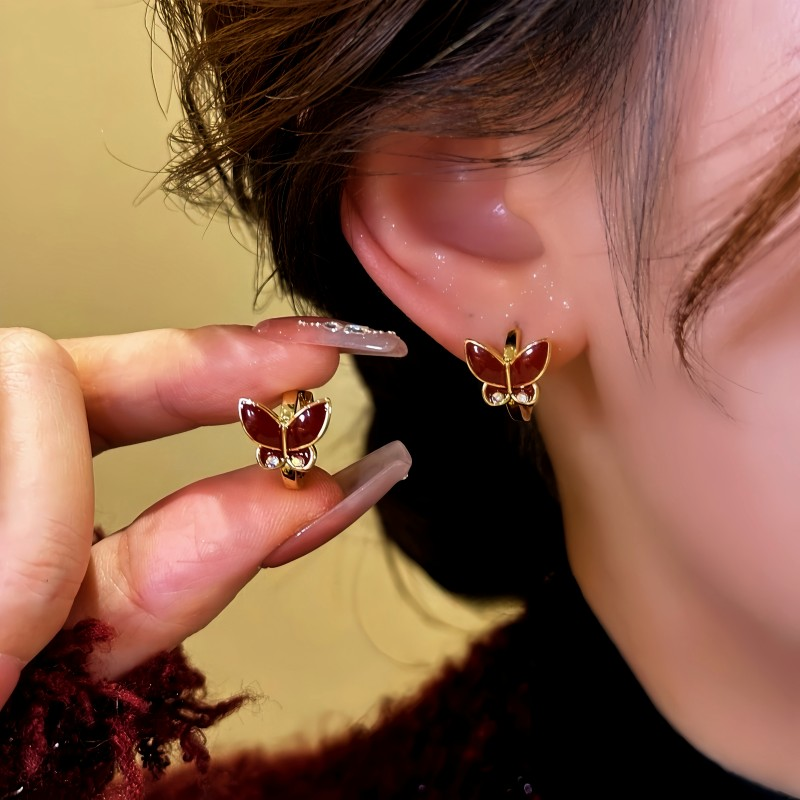 14K Gold-Plated Red Oil Drop Butterfly Hoop Earrings