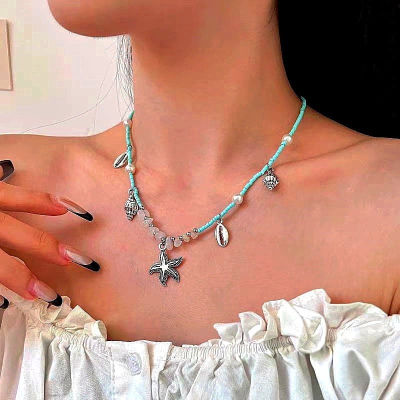 14K Gold-Plated Rhinestone Conch Starfish Pendant Necklaces