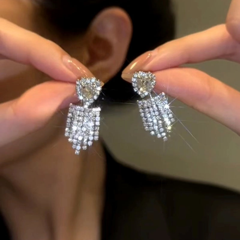 14k Gold-Plated Rhinestone Love Heart Earrings