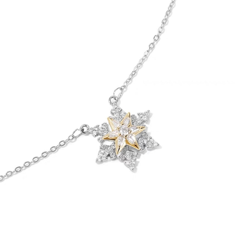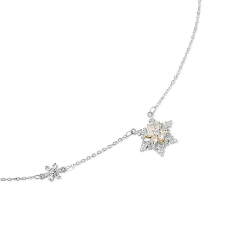 14K Gold Plated Rotating Snowflake ice flower necklace