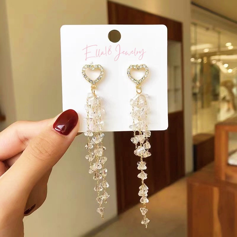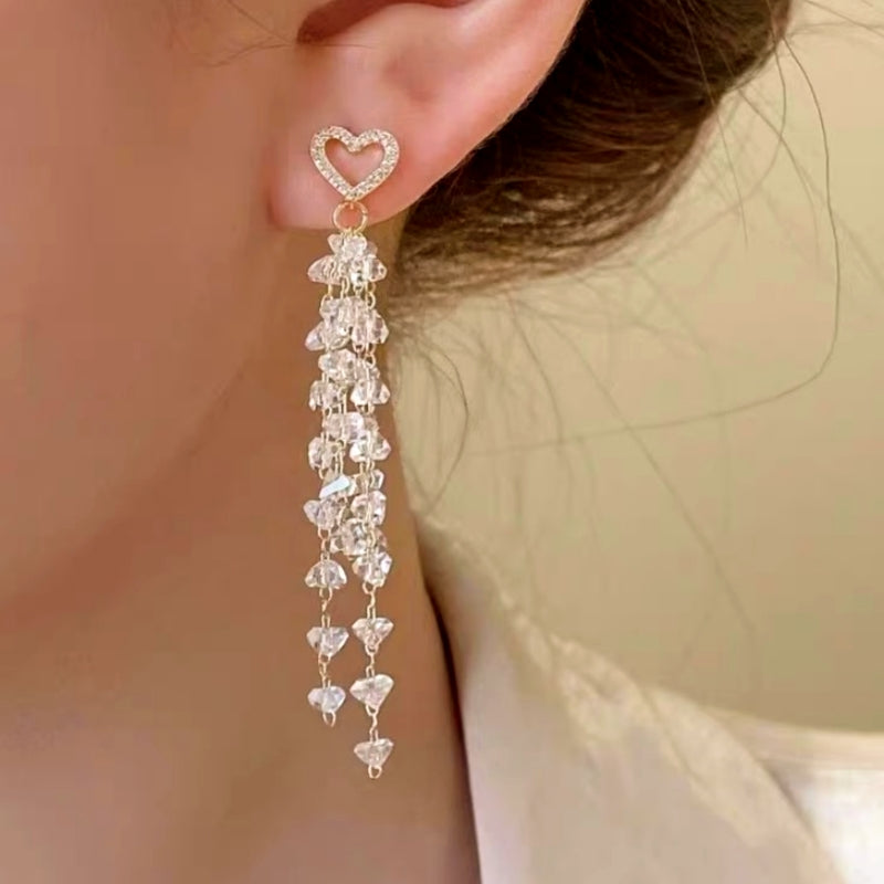 14K Gold-plated Shiny Heart Crystal Tassel Earrings