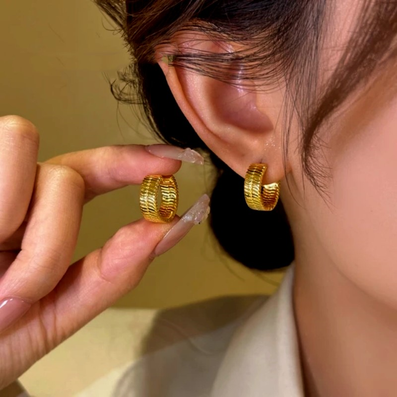 14K Gold-Plated Snake Bone Pattern Little Hoop Earrings