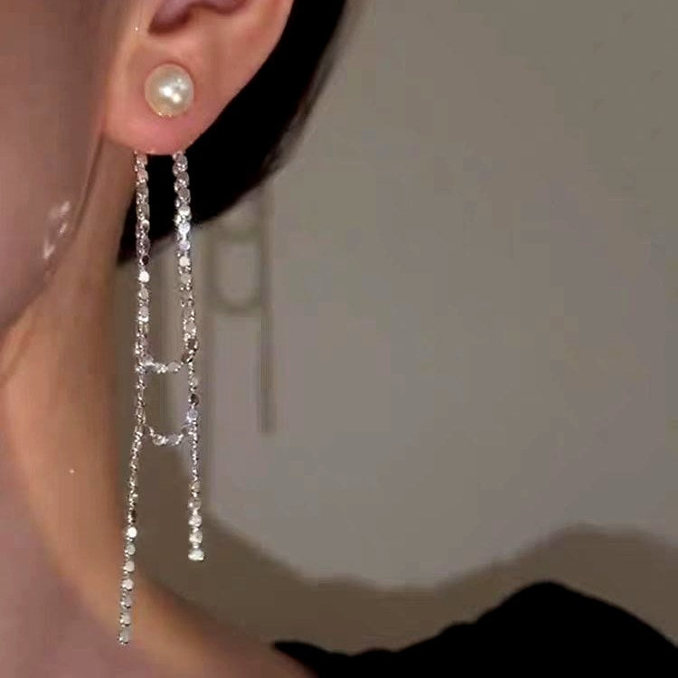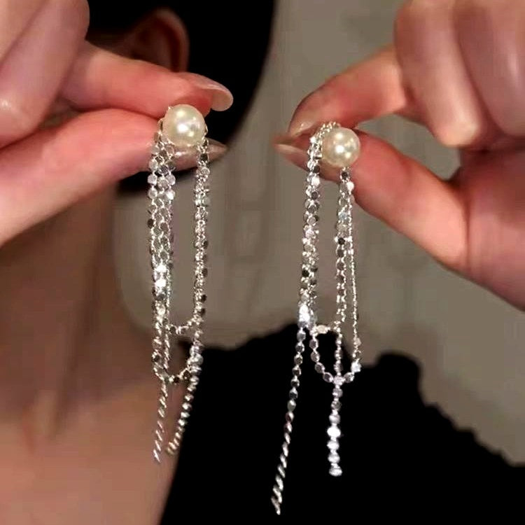 14K Gold-Plated Sparkling Pearl Chain Earrings
