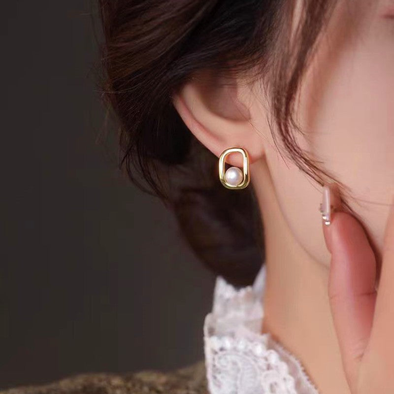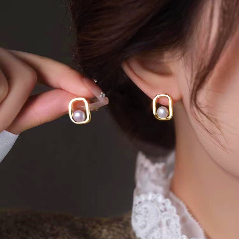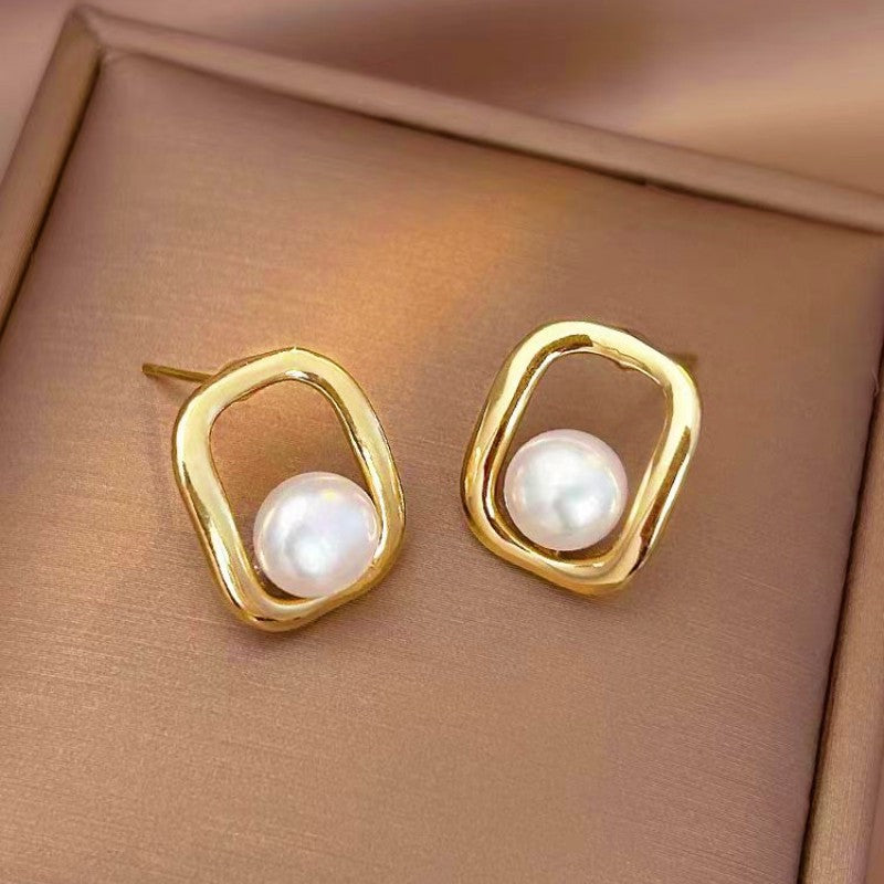 14K Gold-plated Square Artificial Bead Stud Earrings