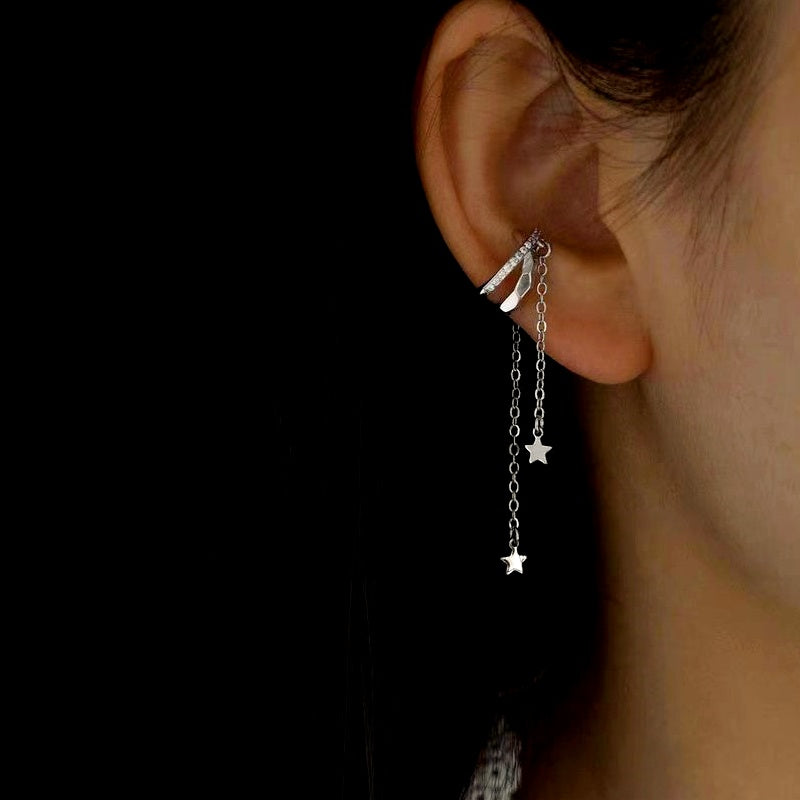 14K Gold-plated Star Chain Tassel Ear clips ( 1 PCS )