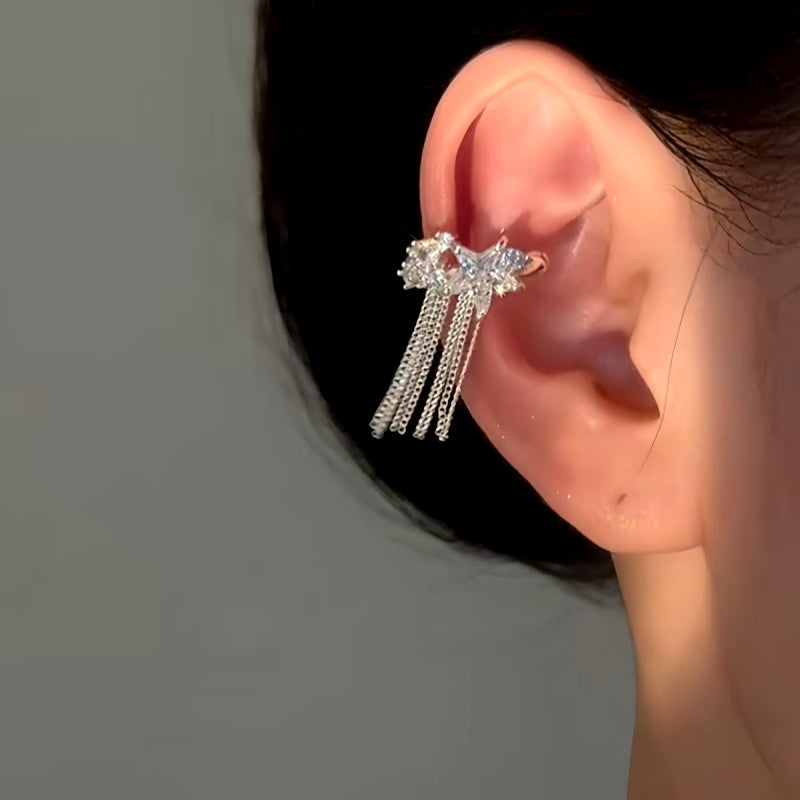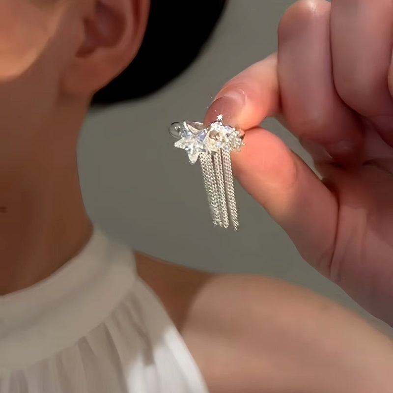 14K Gold-Plated Star Diamond Tassel Ear Clips ( 1 Pair )