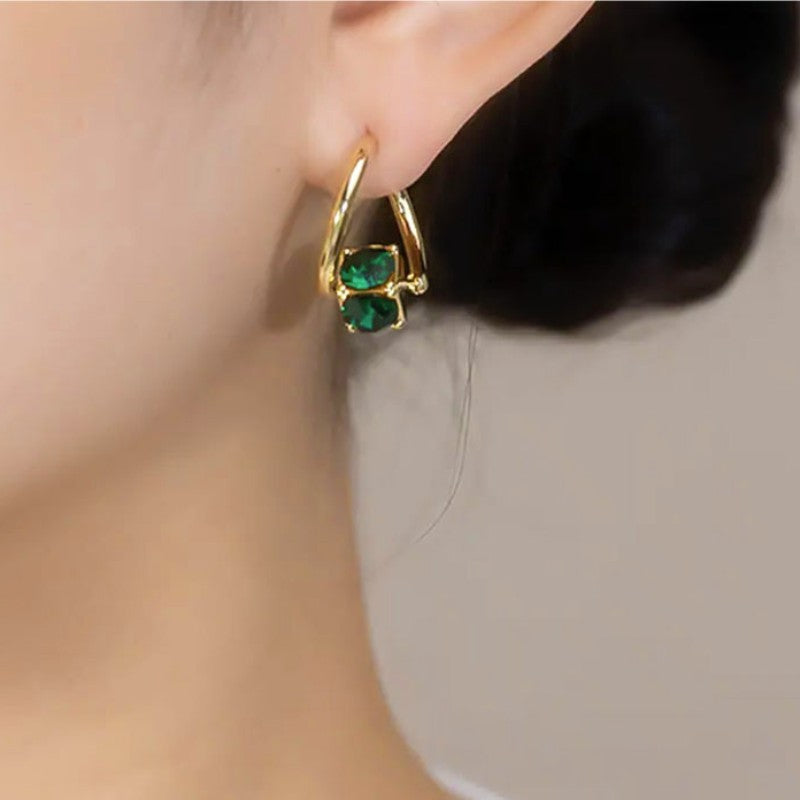 14K Gold-plated Stunning Green Crystal Earrings
